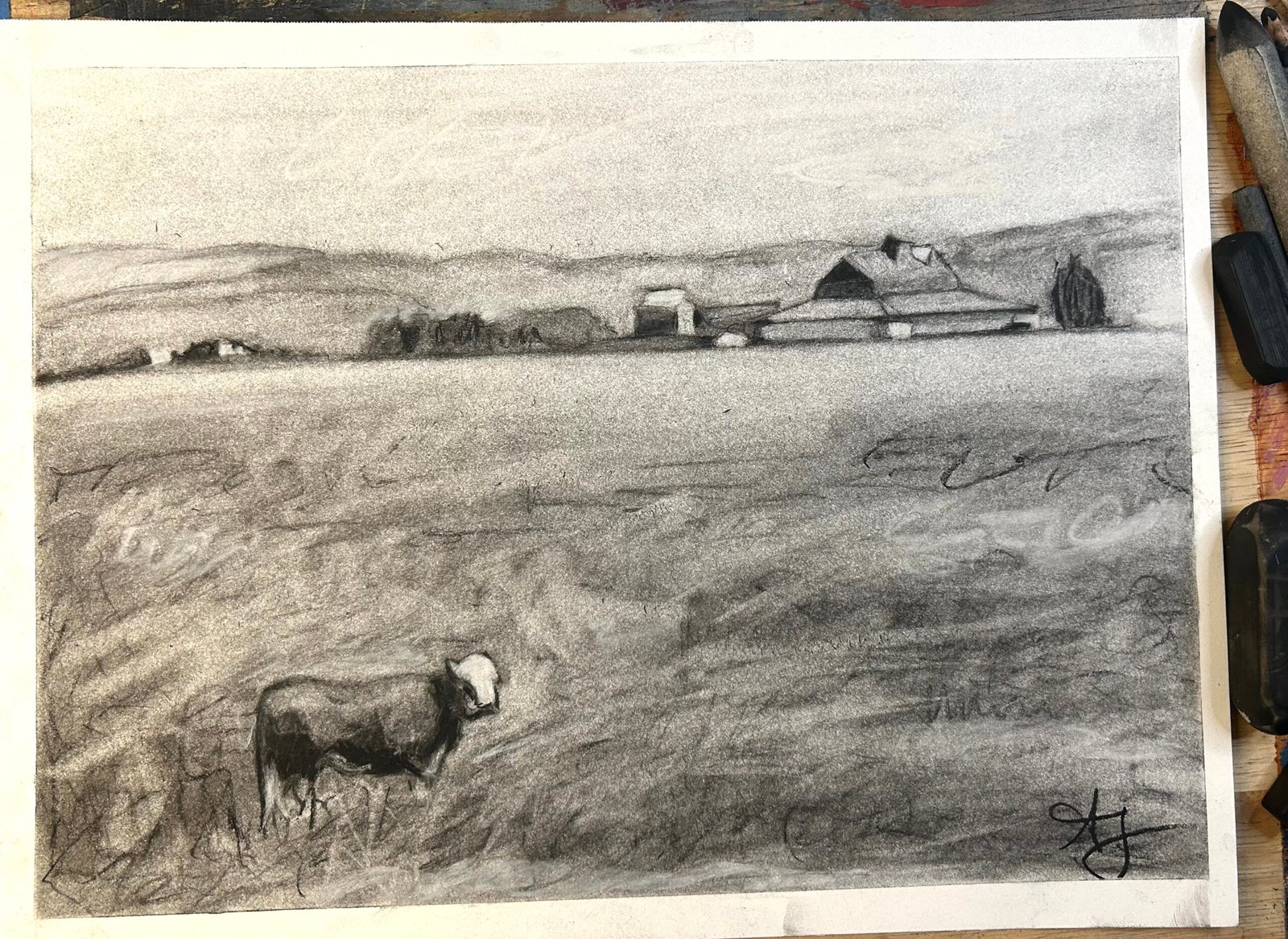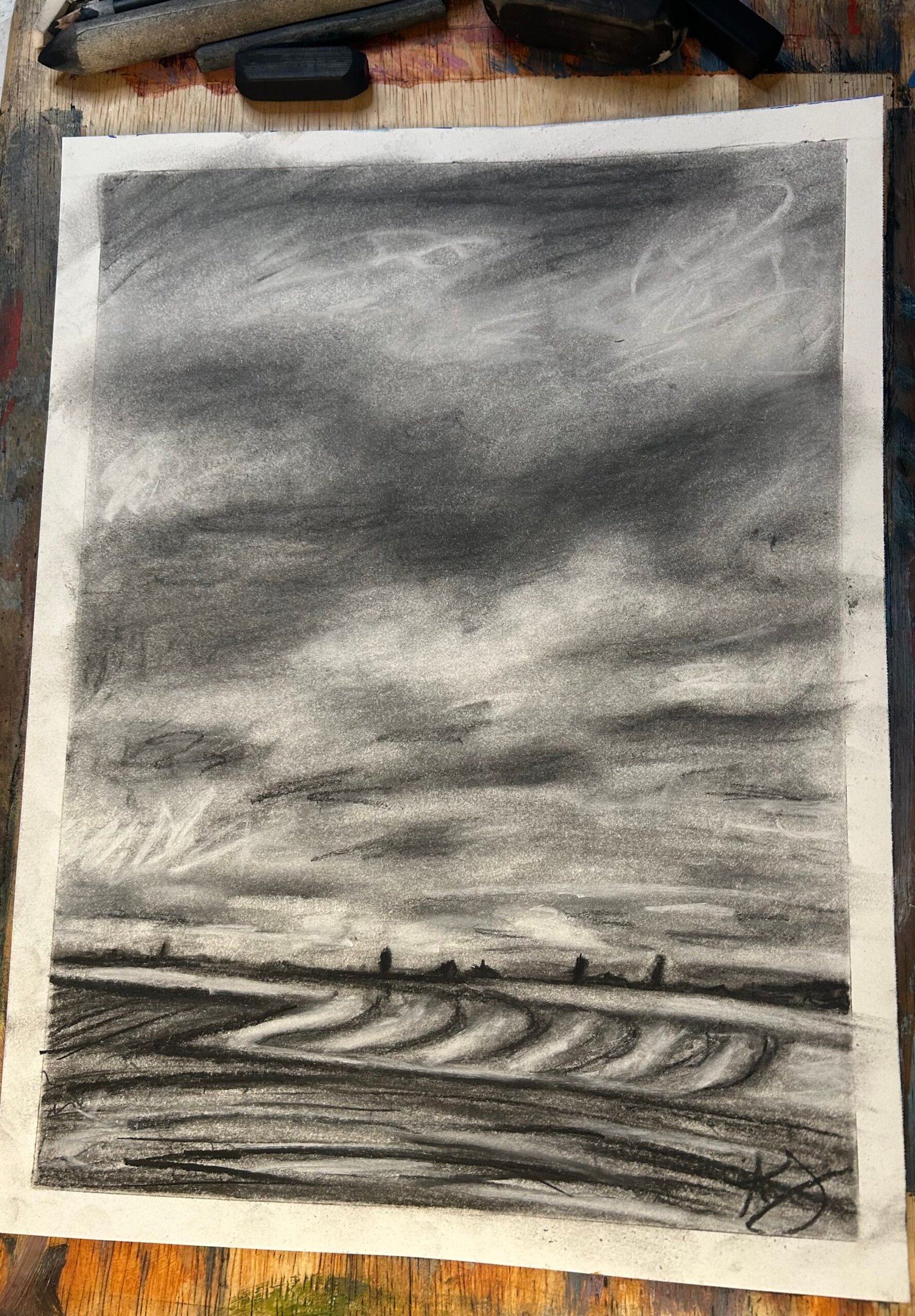 Charcoal sketches of this year’s harvest season. I love the raw, messy, moodiness of charcoal…